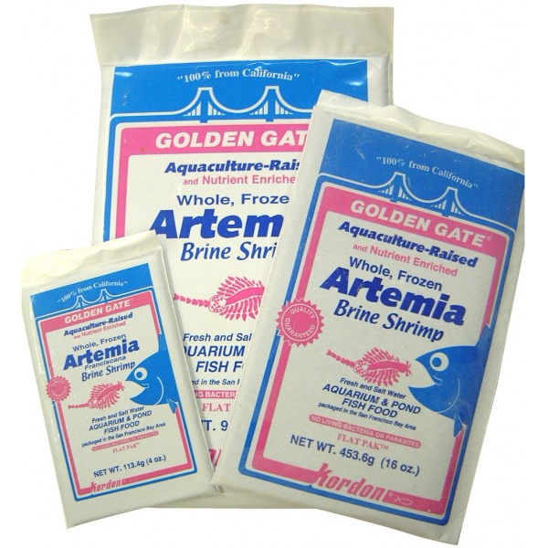 De Golden Gate is in grootschalige vijvers gecontroleerd op de kwaliteit van het water, het zoutgehalte, en het gebruik van voedingsstoffen voor de teelt van de Artemia. De Golden Gate Artemia wordt gevoed met natuurlijke voedingsmiddelen en zijn bijzonder hoog in natuurlijke omega-3 vetzuren en rijk aan voedingsstoffen met eiwitten en vetten. De pakketten bevatten 100% geheel bevroren en voorgewassen pekelkreeftjes. (Artemia franciscana, een aquatische schaaldier soort in het midden van de San Francisco Bay regio van Californië, maar ook erkend als wijd verspreid)